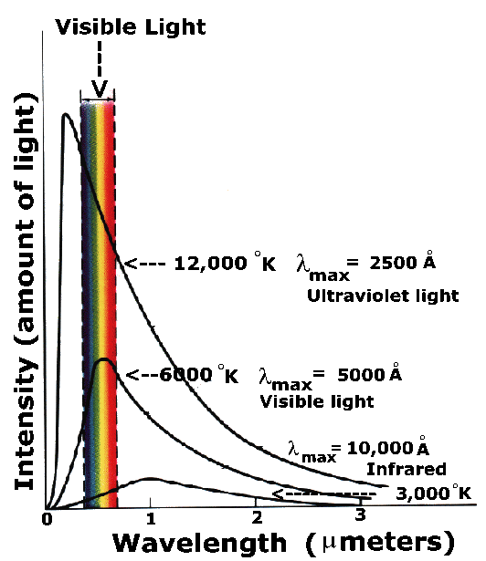 | Hot Star | 30,000 | 1000Å | Ultraviolet |