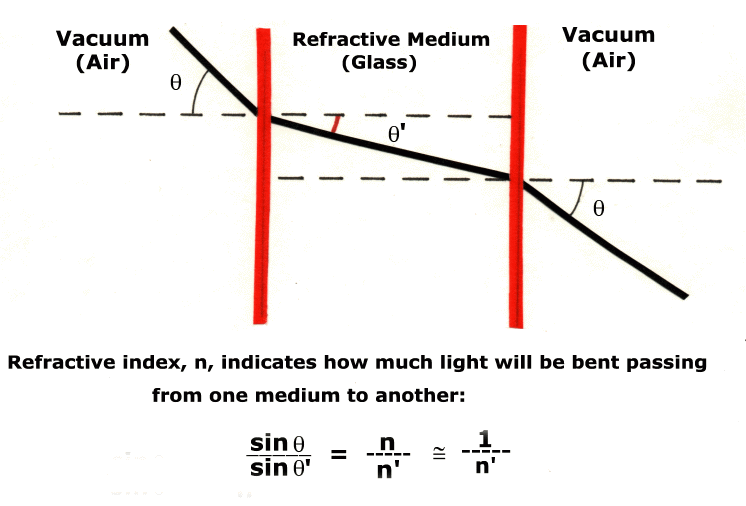 The Refractive Index of Air is very nearly 1 (nair = 1.0003, depending