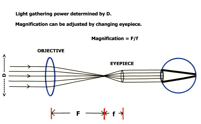 , which is the principal lens of the telescope, and an eyepiece. The image